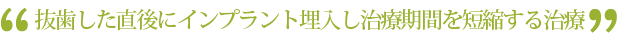 抜歯する治療とインプラント埋入する治療とを同時に行えることで、外科的処置の回数も減り、侵襲も少なく、治療期間も大幅に短縮できるため非常にメリットが大きい治療法と言えます。